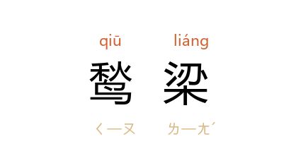 ⒈ 谓鹙立于鱼梁。语本《诗·小雅·白华》:“有鹙在梁,有鹤在林。”孔颖达疏:“有秃鹙之鸟在于鱼梁之上。”
