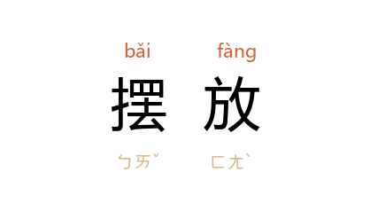 引《水浒传》第四五回:“只见道人挑将经担到来,铺设坛场,摆放佛像供器。”《水浒传》第六六回:“户内缚起山棚,摆放五色屏风炮灯。”