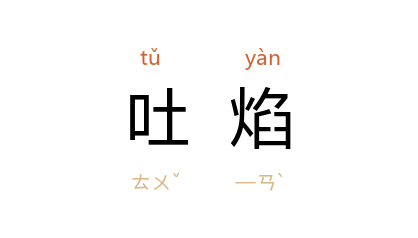 ⒈  见“吐焰”。亦作“吐爓”。亦作“吐燄”。吐出火焰;发出光焰。