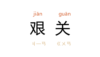 引宋 文天祥 《壬午》诗:“慷慨抚鰲背,艰关出 羊肠。”《宋史·卫王纪》:“杨太后 闻 昺 死,抚膺大慟曰:‘我忍死艰关至此者,正为 赵氏 一块肉尔,今无望矣!’遂赴海死。”