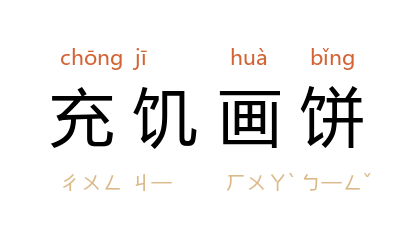 ⒈ 比喻徒具虚名而无益于实际。参见「画饼充饥」条。元·关汉卿亦喻为聊以空想,安慰自己。元·刘时中〈端正好·生灵套〉:「无实惠尽是虚椿,充饥画饼诚堪笑。」
