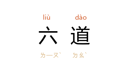 ⒉ 佛教语。谓众生轮迴的六去处:天道、人道、阿修罗道、畜生道、饿鬼道和地狱道。