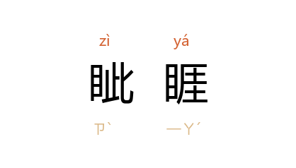 ⒈ 亦作“眦睚”。怒目而视。亦借指微小的怨忿。