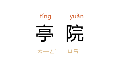 ⒈ 造有凉亭、楼阁等建筑物的庭园或花园。