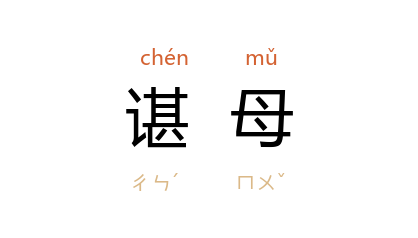 引《太平广记》卷六二引 前蜀 杜光庭 《墉城集仙录·谌母》:“又 吴 市逢有三岁孩子,悲啼呼叫,倏遇 諶母,执母衣裾曰:‘我母何来?’”明 屠隆 《昙花记·真君驱邪》:“奉道 明王,授书 諶姆,浄明忠孝为则。”《警世通言·旌阳宫铁树镇妖》:“却説 金陵 丹阳郡,地名 黄堂,有一女真字曰 婴。潜通至道,忘其甲子,不知几百年岁。乡人累世见之,齿髮不衰,皆以 諶母 呼之。”
