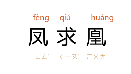 ⒉ 乐曲名。为古琴曲,汉司马相如作客临邛时,为卓文君所奏之曲,因曲辞有「凤兮凤归故乡,遨游四海求其凰」句,故称为〈凤求凰〉。