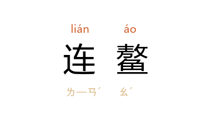 ⒈ 亦作“连鰲”。 相传 渤海 之东,有一深壑,中有神仙所居之五山。然山浮于海,随波而动。天帝遂命巨鳌十五,分作三批,轮流负山,五山始屹立不动。“而 龙伯 之国有大人,举足不盈数步而暨五山之所,一钓而连六鼇,合负而趣归其国,灼其骨以数焉。”事见《列子·汤问》。后因以“连鼇”作善钓之典。