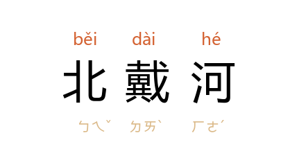 ⒈ 在河北省秦皇岛市西南15千米。因戴河流经西南得名。南临渤海,背依联峰山,西起戴河口,东至鹰角石,长约10千米。海岸曲折,滩面平缓,海水清澈,建有大型海水浴场。风景优美,夏日气候凉爽,为避暑胜地。建有五个海滨公园和数十所别墅。为全国重点风景名胜区。