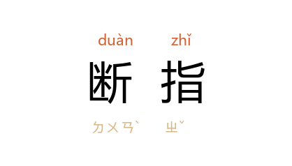引《墨子·大取》:“遇盗人而断指以免身,利也。”《新唐书·忠义传中·张巡》:“因拔佩刀断指,一座大惊,为出涕。”《宣和遗事》前集:“大观 四年,禁燃顶、炼臂、刺血、断指之类。”