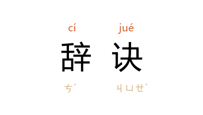 引汉 应劭 《风俗通·怪神·世间亡者多有见神》:“饮食饱满,辞诀而去,家人大哀剥断絶。”《后汉书·方术传上·折象》:“自知亡日,召宾客九族饮食辞诀,忽然而终。”晋 干宝 《搜神记》卷一:“至时, 安公 骑之,从东南去。城邑数万人,豫祖安送之,皆辞诀。”《旧五代史·晋书·郑云叟传》:“云叟 乃薄游诸郡,获数百緡以赡其家,辞诀而去。”