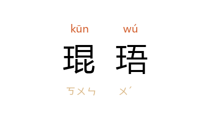 引《史记·司马相如列传》:“其石则赤玉玫瑰,琳瑉琨珸。”裴駰 集解引《汉书音义》:“琨珸,山名也,出善金。”司马贞 索隐:“琨珸, 司马彪 云‘石之次玉者’。”按,《汉书·司马相如传上》作“昆吾”。 元 范琮 《荆山璞赋》:“琨珸进而砆石用兮,反誚尔以为玭。”