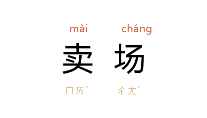 ⒈ 比较大的出售商品的场所:仓储式卖场。