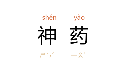 引《史记·秦始皇本纪》:“方士 徐巿 等入海求神药,数岁不得。”三国 魏 曹操 《秋胡行》之二:“思得神药,万岁为期。”程善之 《春日杂感》诗:“寳鼎鍊神药,不如手中巵。”