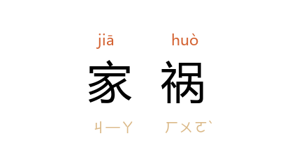 引《左传·昭公十二年》:“昭子 曰:‘ 叔孙氏 有家祸,杀适立庶,故 婼 也及此。’”《后汉书·袁绍传》:“是时豪杰既多附 绍,且感其家祸,人思为报,州郡蜂起,莫不以 袁氏 为名。”宋 曾巩 《代太平州知州谢到任表》:“方喜便于庭闈,遽已罹于家祸。”