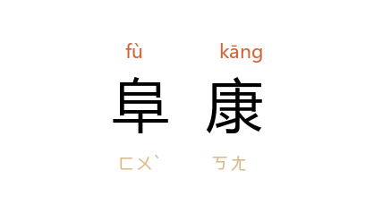 引晋 常璩 《华阳国志·蜀志》:“是时世平道治,民物阜康。”唐 陆贽 《韩滉加检校右仆射制》:“军无挠败,俗以阜康。”明 方孝孺 《宁野轩铭》:“惟昔有国,政简而章。洽于万邦,民俗阜康。”清 吴伟业 《遇南厢园叟感赋》诗:“江 南昔未乱,閭左称阜康。”