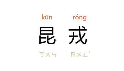 引《汉书·杨恽传》:“昆 戎 旧壤,子弟贪鄙,岂习俗之移人哉?”颜师古 注引 文颖 曰:“昆 夷 之地也。”唐 杜甫 《塞芦子》诗:“近闻 昆 戎 徒,为退三百里。”仇兆鳌 注:“昆夷、犬戎。”唐 刘知几 《史通·杂说下》:“敦煌 僻处 西域,昆戎 之乡也。”
