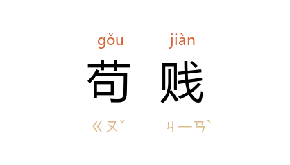 引《史记·樗里子甘茂列传》:“夫 史举,下蔡 之监门也,大不为事君,小不为家室,以苟贱不廉闻於世, 甘茂 事之顺焉。”宋 罗大经 《鹤林玉露》卷三:“柳下惠 视袒裼裸裎,焉能凂我,可谓和光同尘矣,然不以三公易其介,未尝流於苟贱也。”《二十年目睹之怪现状》第六四回:“并且一走了官场,就是你前回説的话,先要学的卑污苟贱,灭絶天良。”