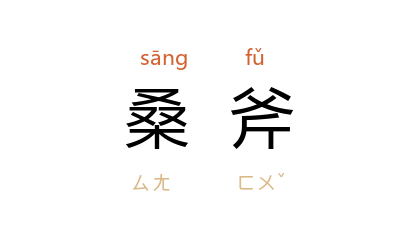 引唐 张祜 《题曾氏园林》诗:“斫树遗桑斧,浇花溼笋鞋。”宋 吴处厚 《青箱杂记》卷六:“王公随 雅嗜吟咏,有《宫词》云:‘一声啼鸟禁门静,满地落花春日长。’又《野步》云:‘桑斧刊春色,渔歌唱夕阳。’皆公应举时行卷所作也。”