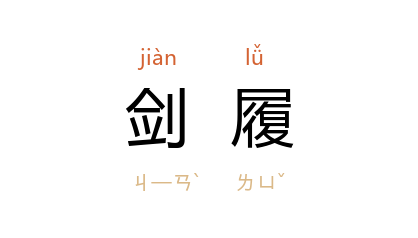 引唐·钱起〈陪郭常侍令公东亭宴集〉诗:「盛业山河列,重名剑履荣。」《三国演义·第四回》:「董卓为相国,赞拜不名,入朝不趋,剑履上殿,威福莫比。」