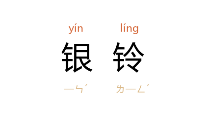 引茅盾 《子夜》一:“蓦地这披发头扭了一扭,又响出银铃似的声音。”巴金 《春天里的秋天》二:“他不理我,忽然吐出银铃似的声音。”