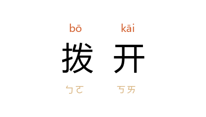 引《水浒传》第六一回:「两个斗不到三合,鲁智深拨开朴刀,回身便走。」《醒世恒言・卷一四・闹樊楼多情周胜仙》:「到坟边把刀拨开雪地,俱是日间安排下脚手,下刀挑开石板下去。」