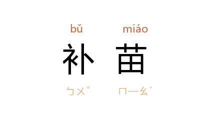⒈ 农作物幼苗出土后,发现有缺苗断垄现象时,用移苗或补种的方法把苗补全。