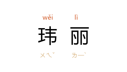 引《艺文类聚》卷七二引 隋 江总 《玛瑙盌赋》:“翠羽流霞之杯,谅无闻於瑋丽,岂匹此之奇瓌。”宋 曾巩 《代人祭李白文》:“子之文章,杰立人上……瑋丽瑰奇,大巧自然。”康有为 《<春秋董氏学>自序》:“如野人之入册府,聋者之听《钧天》,徒骇瑋丽,不能赞一辞也。”郭沫若 《屈原赋今译·<天问>解题》:“在文学的园地上开放了一簇像千叶牡丹那样芬芳玮丽的大红花。”