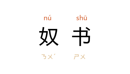 引宋 欧阳修 《笔说》:“学书当自成一家之体,其模倣他人,谓之奴书。”宋 沉括 《梦溪补笔谈·艺文》:“尽得师法,律度备全,犹是‘奴书’,然须自此入;过此一路,乃涉妙境,无跡可窥,然后入神。”