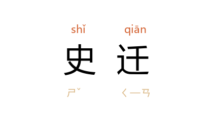 引晋 常璩 《华阳国志·<后贤志>序》:“史迁 之记,详於 秦 汉 ; 班生 之书,备乎 哀 平。”明 张煌言 《李陵论》:“世以 李陵 报 苏子卿 书,出自 史迁 之笔。”鲁迅 《汉文学史纲要》第三篇:“故自 史迁 以来,均谓 周 之要本,归於 老子 之言。”