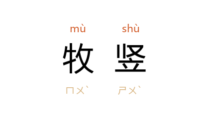 ⒈ 牧牛羊的童子。宋·陆游〈秋晚闲步邻曲以予近尝卧病皆欣然迎劳〉诗:「放翁病起出门行,绩女窥篱牧竖迎。」也作「牧童」。