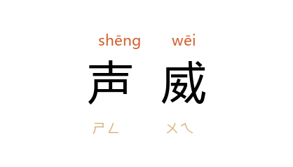 ⒈ 名声威望。唐·韩愈〈张中丞传后叙〉:「贺兰嫉巡远之声威功绩出己上,不肯出师救。」也作「威声」。