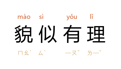 ⒈ 貌:表面。表面上看好像有道理。形容实际上没有道理,表面却像很有道理的样子。