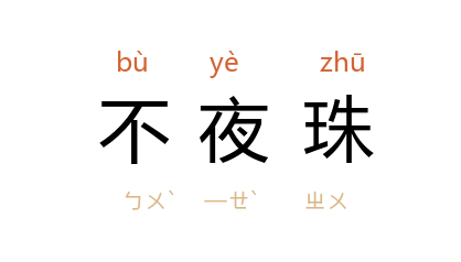 ⒈ 传说中夜间能放光的珠子。旧题汉·伶玄《飞燕外传》:“真腊夷献万年蛤、不夜珠,光彩皆若月,照人无妍丑,皆美艳。”