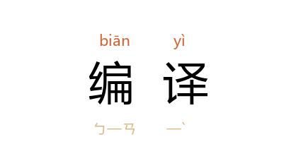 例如:「国立编译馆负责教科书及学术著作的编译。」
