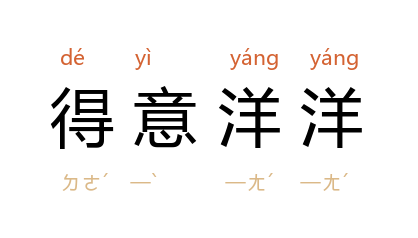 英语joyfully satisfied, to be immensely proud of oneself, proudly, an air of complacency