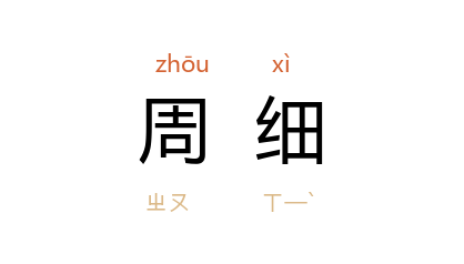 引《太平广记》卷三二引 唐 牛肃 《纪闻·王贾》:“﹝ 王贾 ﹞乃告 暹 曰:‘君有宰相禄,当自保爱。’因示其拜官歷任,及於年寿,周细语之。”《云笈七籤》卷六九:“前《寳砂》篇中略述真汞之诀而未周细。”