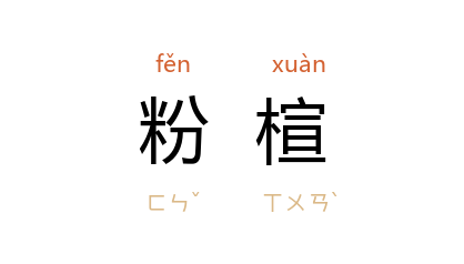 ⒈ 杭 人对胡桃的戏称。意谓敷粉时含于口中作为楦头。 清 袁枚 《新齐谐·粉楦》:“杭州 范 某娶再婚妇,年五十餘,齿半落矣。奩具内槖槖有声,启视则匣装两胡桃,不知其所用,以为偶遗落耳。次早,老妇临镜敷粉,两颊内陷,以齿落故,粉不能匀。呼婢曰:‘取我粉楦来。’婢以胡桃进,妇取含两颊中,扑粉遂匀。