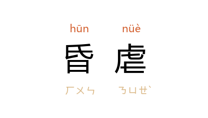 引《后汉书·西羌传序》:“时 幽王 昏虐,四夷交侵,遂废 申后 而立 褒姒。”《文选·陆倕<石阙铭>》:“在 齐 之季,昏虐君临。”吕向 注:“昏闇暴虐也。”唐 张良璞 《览史》诗:“昏虐不务德,百代无芳声。”梁启超 《新史学·论纪年》:“然纪元既不以帝号,则史家之争正统者,其更无説以自文矣。不然,以 新莽 之昏虐, 武后 之淫暴,而作史者势不能不以其始建国。”