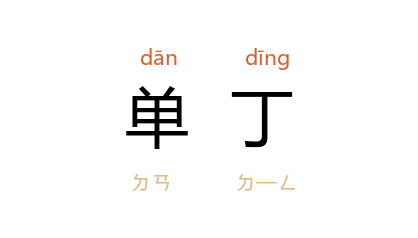 ⒊ 独自、独个儿。宋·黄庭坚〈送密老住五峰〉诗「去与青山作主人,不负法昌老禅将」句下宋·任渊·注:「倚遇禅师三十年单丁住法昌山。」