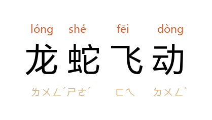 亦作“龙蛇飞舞”。 叶圣陶 《抗争》:“一本开成立大会的签名簿,龙蛇飞舞的墨笔字同蝇头小楷的铅笔字都有。”