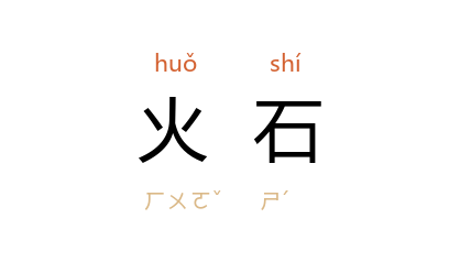 ⒈ 旧日取火用的燧石。唐·李白〈留别广陵诸公〉诗:「炼丹费火石,采药穷山川。」亦 称为「燧石」。