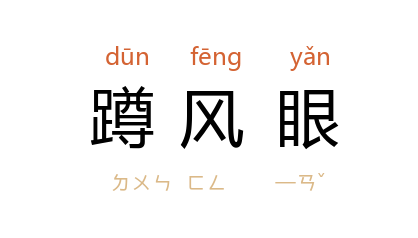 ⒈ 风眼,监狱。监狱的牢房没有窗户,只有小孔,可通风,探视外面,故称坐牢为「蹲风眼」。