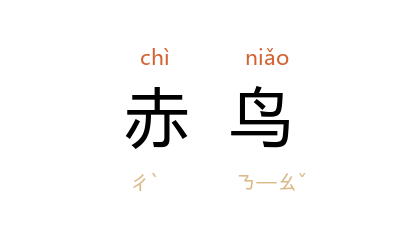 ⒊ 赤色的鸟。用为时令(表示夏天)、方位(表示前方、南方)的标识或象征。