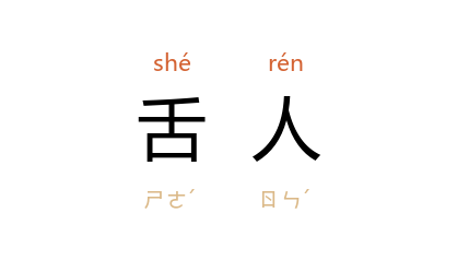 引《国语·周语中》:“故坐诸门外,而使舌人体委与之。”韦昭 注:“舌人,能达异方之志,象胥之官也。”明 王志坚 《表异录·地理》:“译语人曰象胥,又曰舌人。”清 赵翼 《同北野潄田观西洋乐器》诗:“年深习汉语,无烦舌人译。”