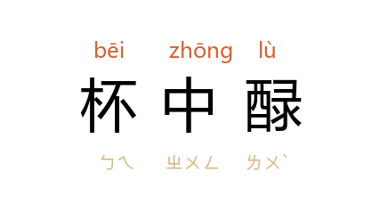 引南朝 梁 王僧孺 《在王晋安酒席数韵》:“何因送款款,半饮杯中醁。”唐 李白 《对雪醉后赠王历阳》诗:“子猷 闻风动窗竹,相邀共醉杯中緑。”唐 杜甫 《醉为马坠诸公携酒相看》诗:“共指西日不相贷,喧呼且覆杯中渌。”
