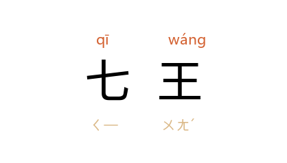 ⒊ 南宋追封高宗时抗金诸将韩世忠为蕲王、刘安世为鄜王、张俊为循王、岳飞为鄂王、杨存中为和王、吴玠为涪王、吴璘为信王,合称七王。见宋王应麟《小学绀珠·名臣下·七王》。