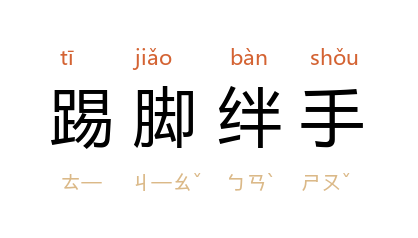 引《西游补》第一回:“行者 看见,心中焦躁,耳朵中取出金箍棒,拿起乱赶,吓得小儿们一个个踢脚绊手走去。”