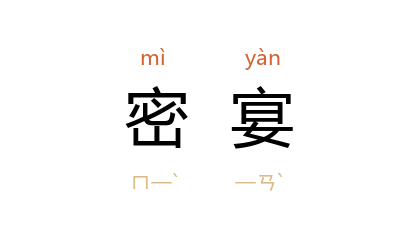 ⒈ 见“密宴”。亦作“密讌”。指气氛亲昵融洽的小型宴会。一本作“密讌”。