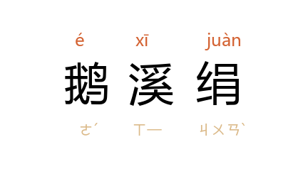 ⒉ 产于四川省盐亭县鹅溪的绢帛。唐代为贡品,宋人书画尤重之。