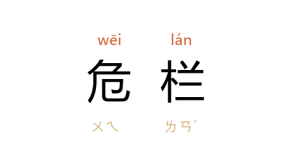 引唐 李商隐 《北楼》诗:“此楼堪北望,轻命倚危栏。”宋 陈鉴之 《暮登蓬莱阁》诗:“危栏散湮鬱,已暮亦登临。”明 谢榛 《四溟诗话》卷三:“予自 正德 甲戌,年甫十六,学作乐府商调,以写春怨,尚记首一闕云:‘……倚危栏,又看三月景,杳然不见多情。’”